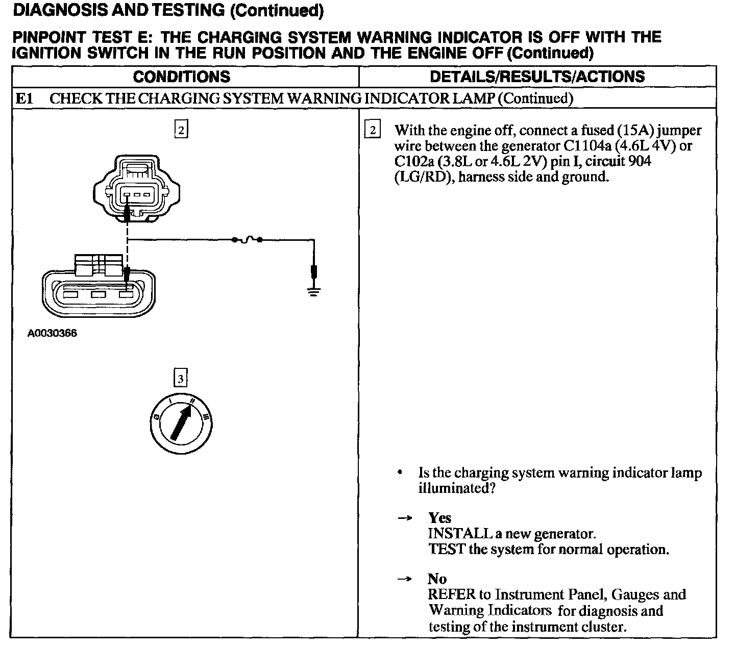 Test E: Warning Indicator Off W/Ign Switch In RUN/Engine OFF
