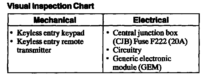 1. Verify the customer concern by operating the system.Visual Inspection Chart: