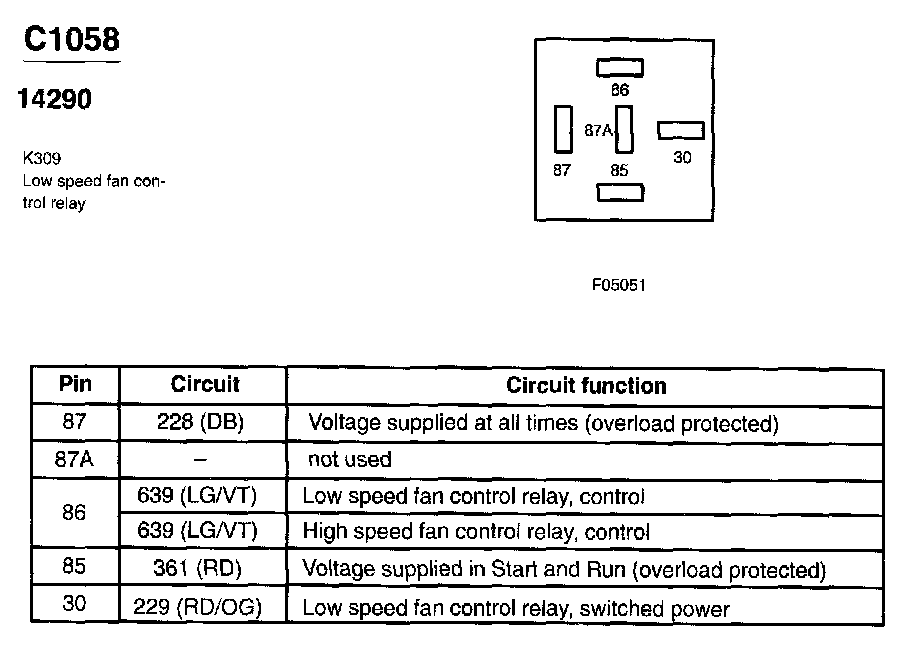 Low Speed Fan Control Relay