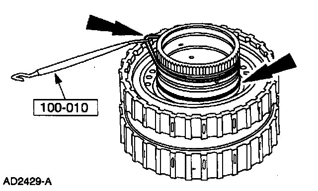 12. Using the special tool remove the intermediate and direct clutch hub O-ring seals.