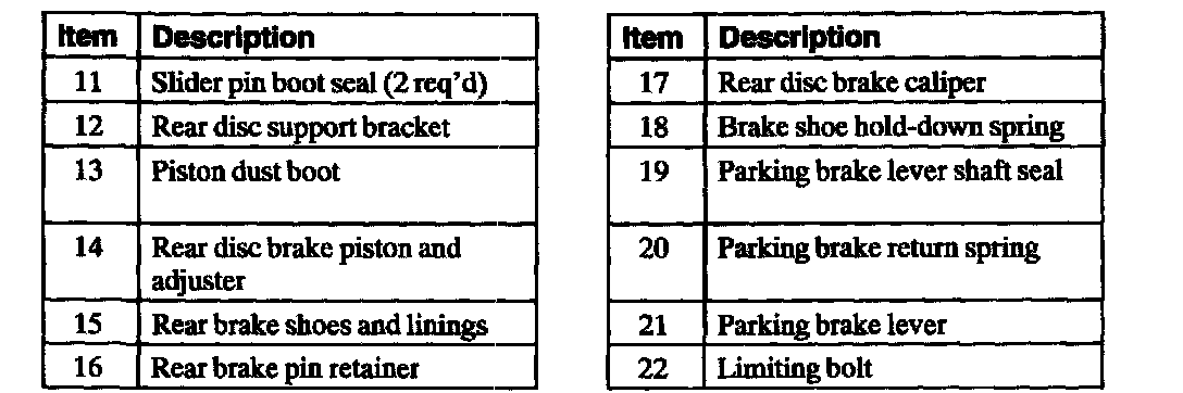 Rear Disc BrakeThe rear disc brake system is comprised of the components shown in the following illustrations.