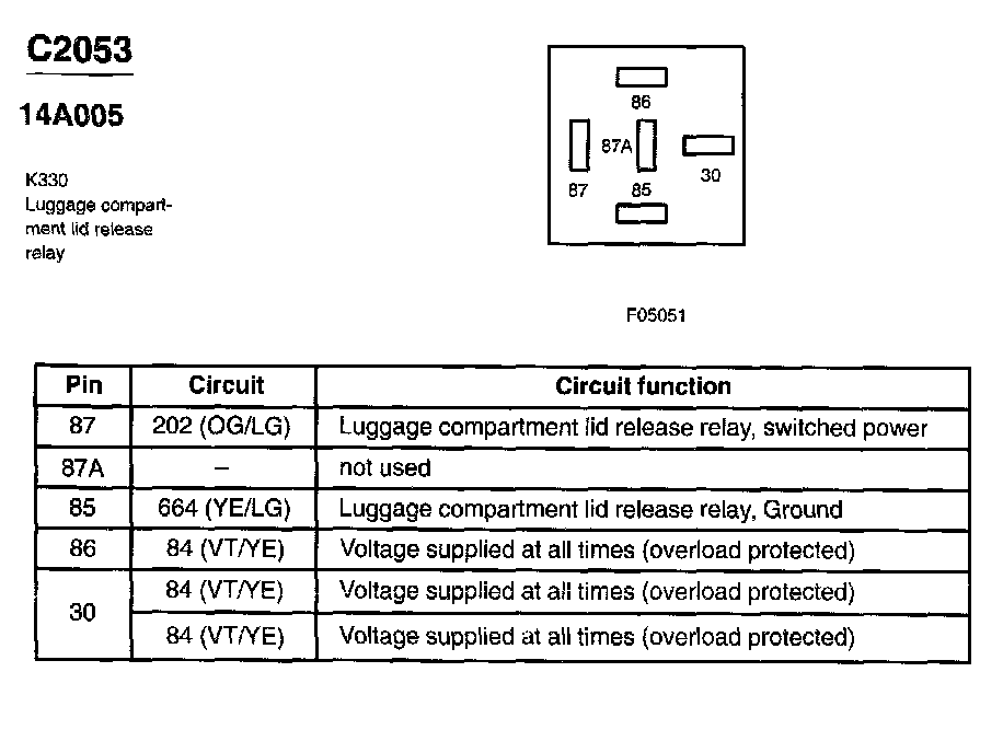 Luggage Compartment Lid Release Relay