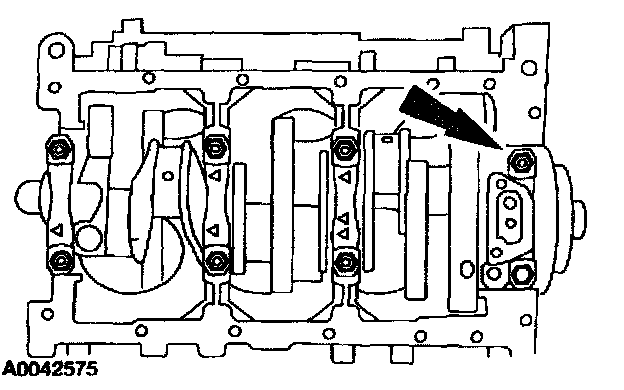 68. Remove the eight main bearing cap bolts.