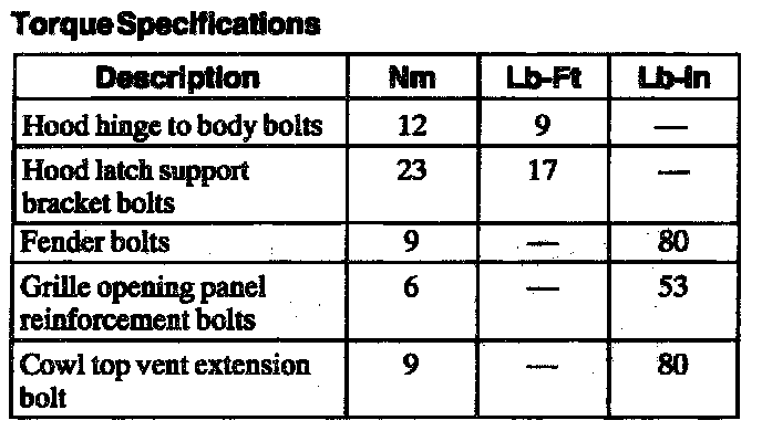 Torque Specifications: