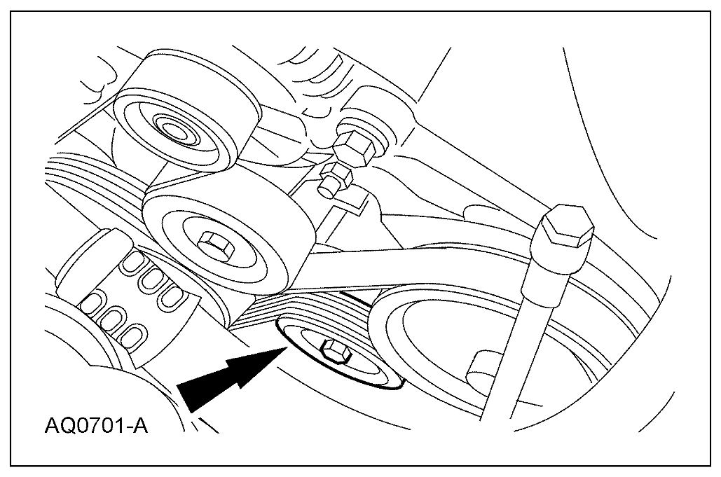 3. Loosen the tensioner and remove the drive belt from the A/C compressor pulley.