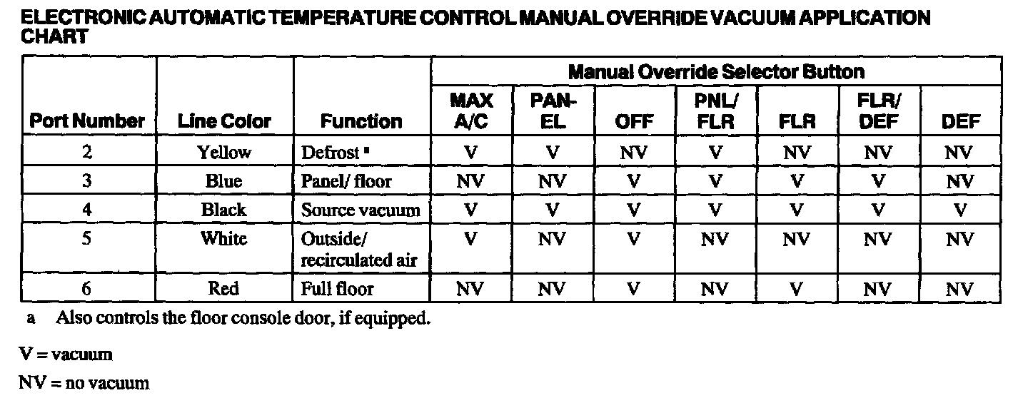 Electronic Automatic Temperature Control Manual Override Vacuum Application Chart: