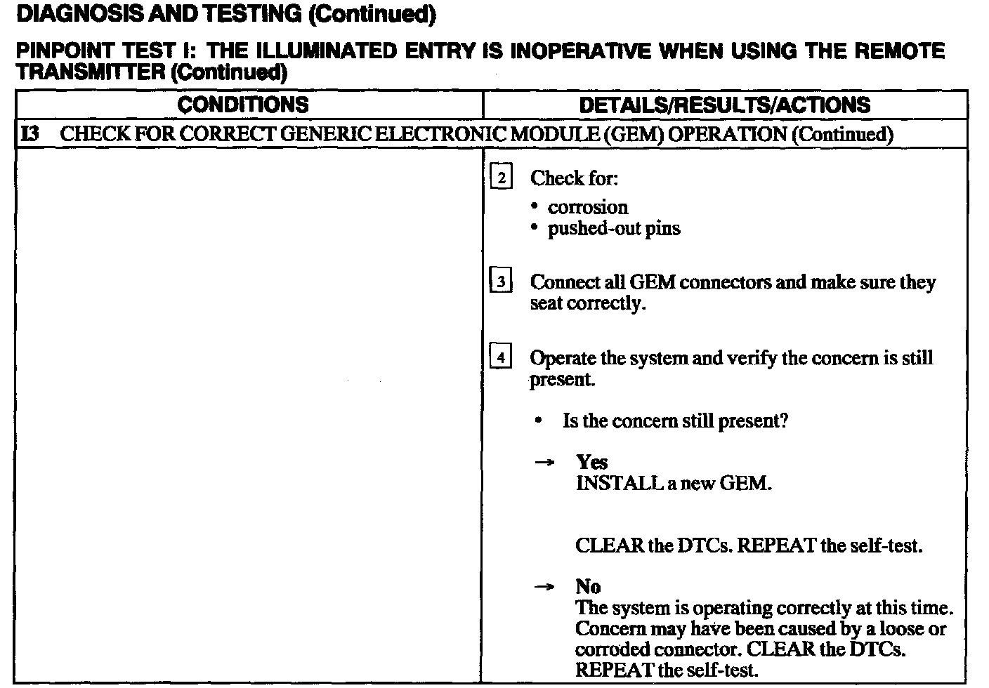 Test I: Illuminated Entry Is Inoperative When Using The Remote Transmitter
