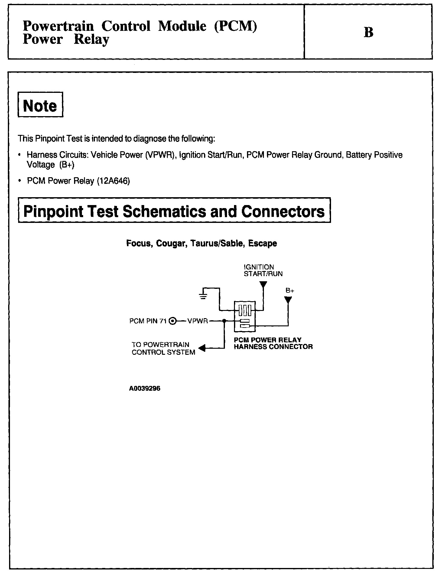 Test B: Powertrain Control Module PCM Power Relay