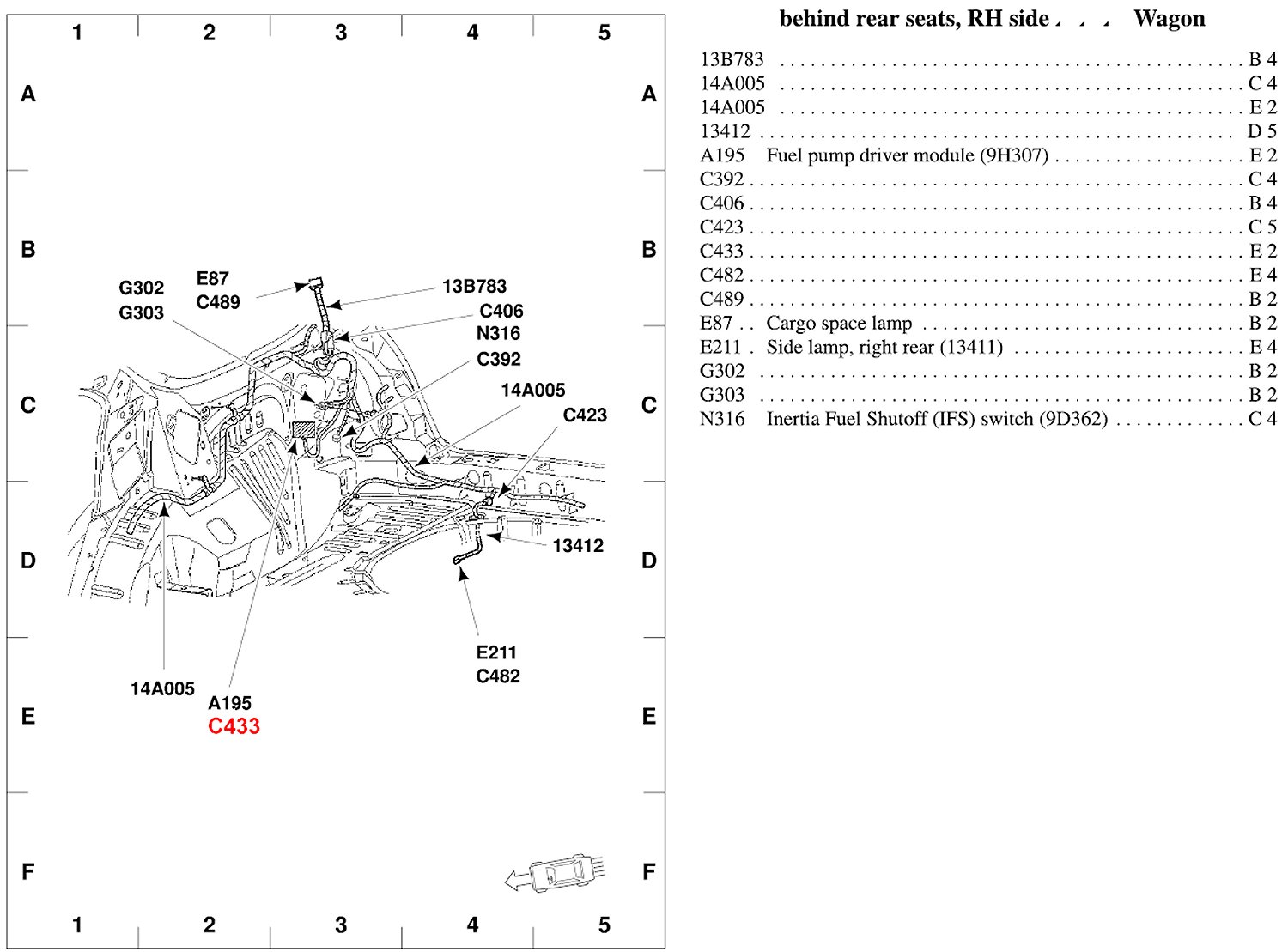Fuel Pump Driver Module is located behind luggage compartment lining, RH side.