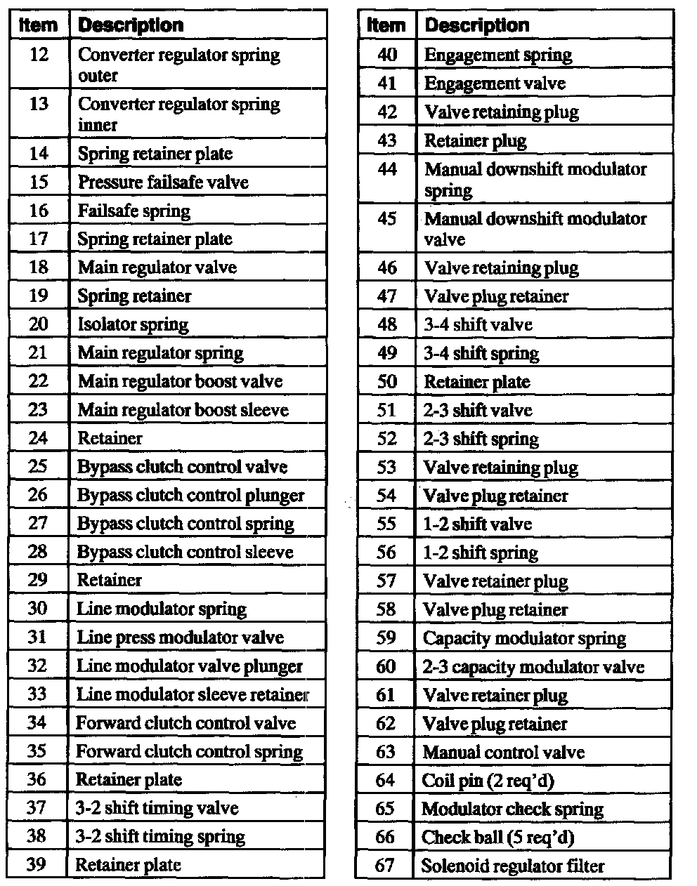 Remove the individual valves and springs by removing the retaining clips and bore plugs. See the main control valve body assembly illustration for valve and spring locations. Clean valves, springs and main control valve body.