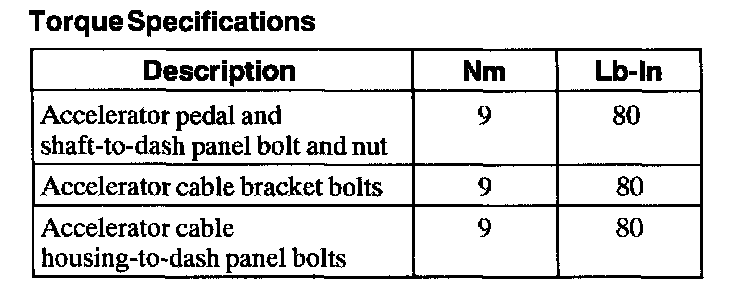 Accelerator Pedal: Specifications