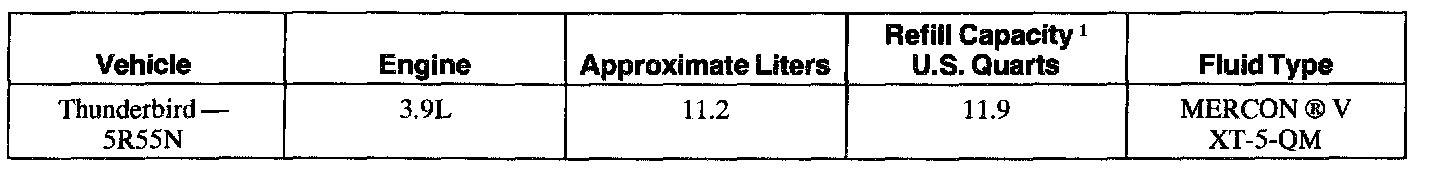 Refill Capacity1 Approximate dry capacity, includes cooler and tubes. Fluid level procedures should be used to determine actual fluid requirements and fluid specification. DO NOT OVERFILL. If it is necessary to add or change fluid, use only fluid that has been certified by the supplier as meeting the Ford Motor Company specification shown.