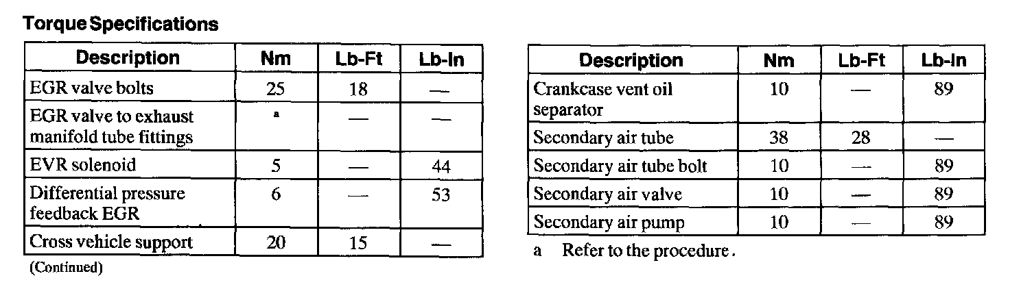 Torque Specifications: