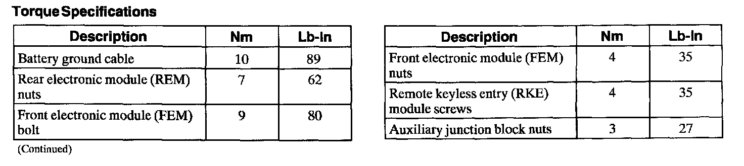 Torque Specifications: