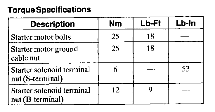 Torque Specifications: