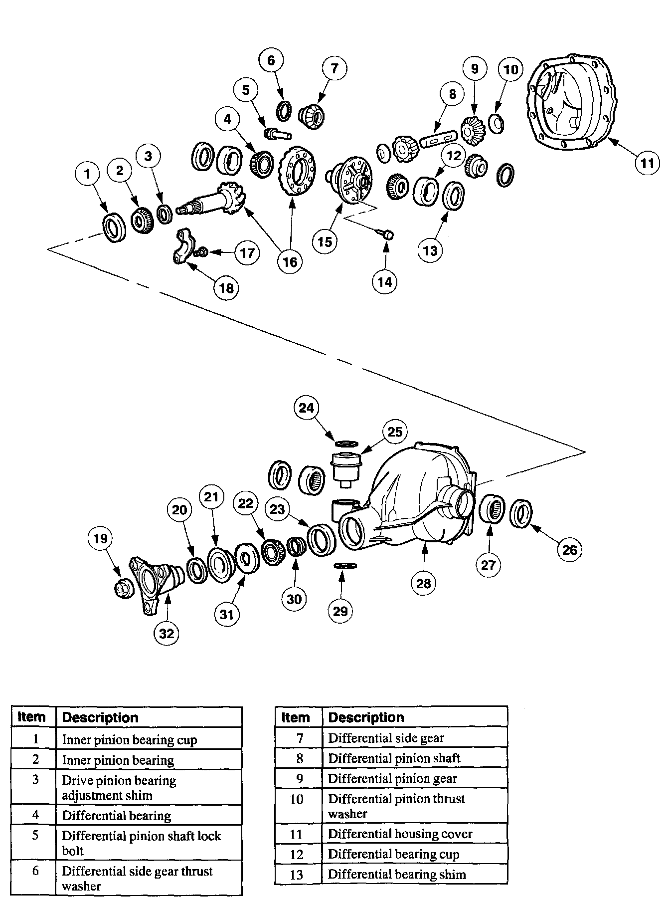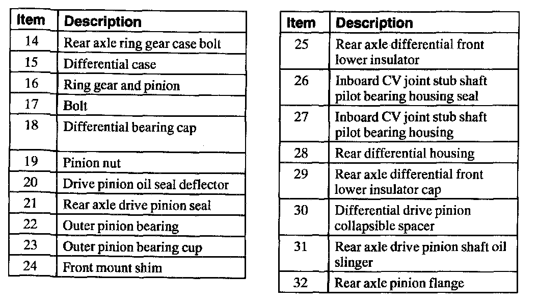 ^ Differential bearing preload and ring gear backlash which are adjusted by differential bearing shims located between the differential bearing cup and the rear differential housing.