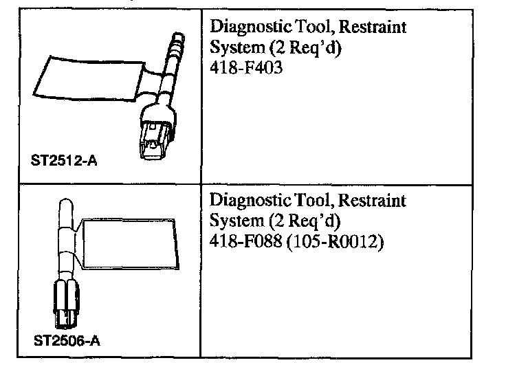 WARNING: THE RESTRAINT SYSTEM DIAGNOSTIC TOOL IS FOR RESTRAINT SYSTEM SERVICE ONLY. REMOVE FROM THE VEHICLE PRIOR TO ROAD USE. FAILURE TO REMOVE COULD RESULT IN INJURY AND POSSIBLE VIOLATION OF VEHICLE SAFETY STANDARDS.