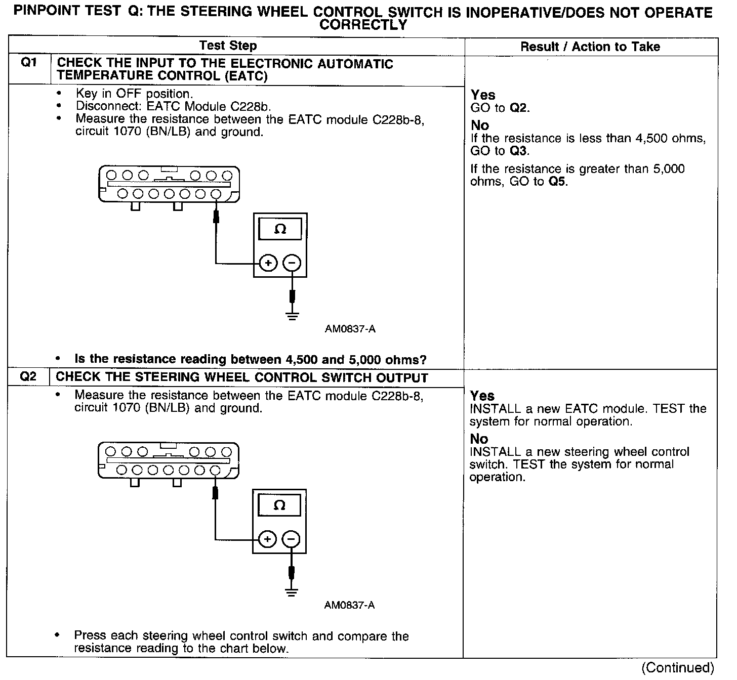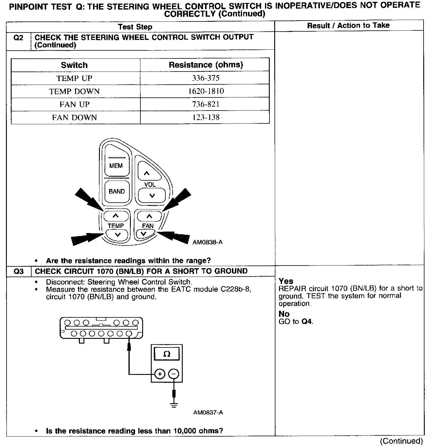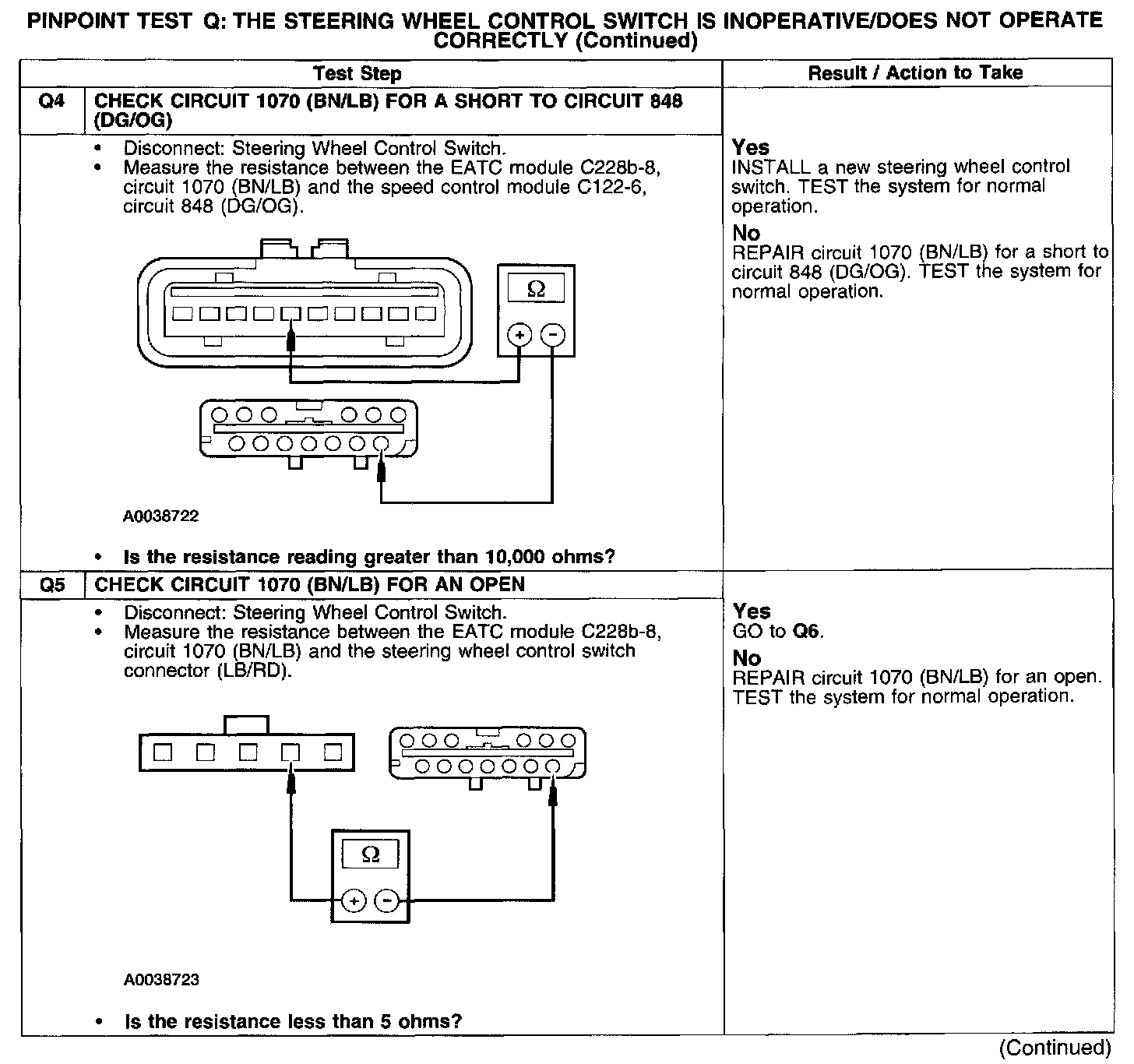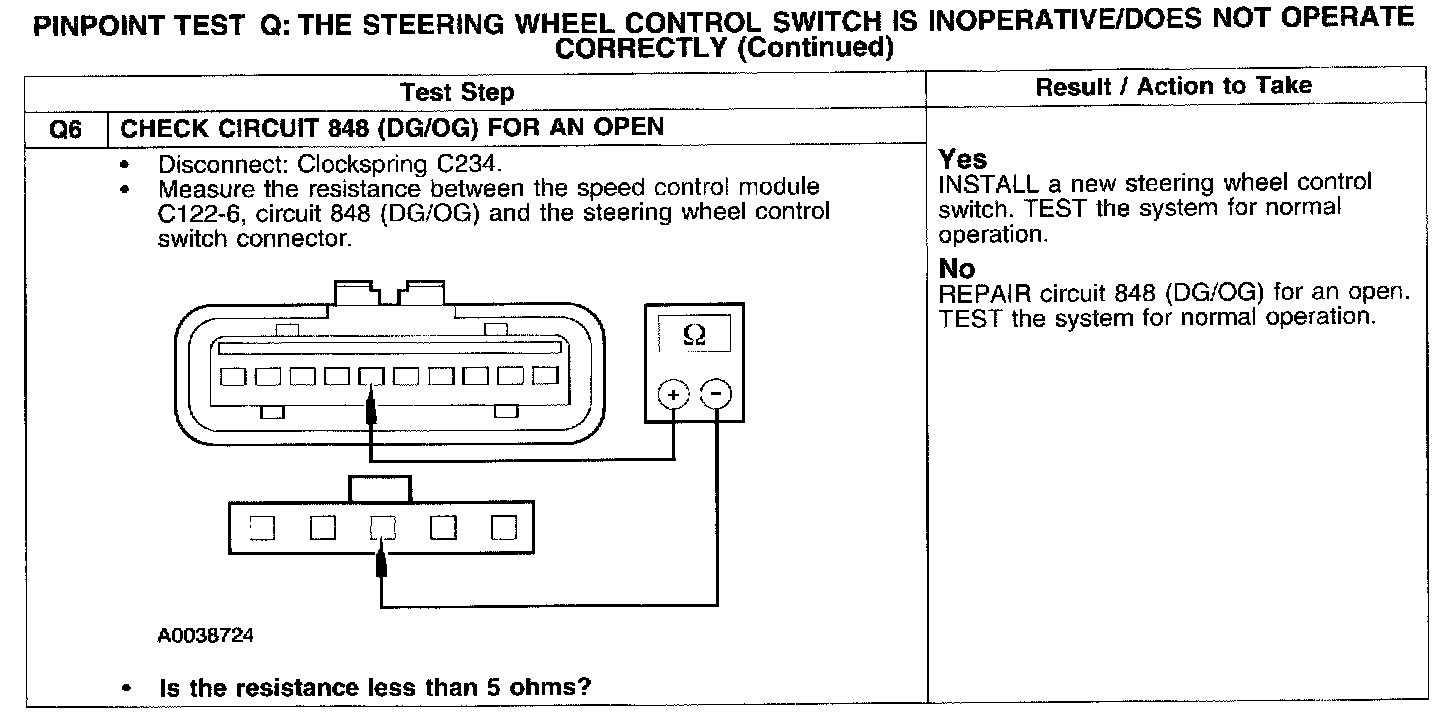 Test Q: Steering Wheel Switch Inop/Does Not Operate Correctly