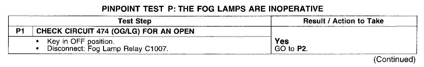 PINPOINT TEST P: THE FOG LAMPS ARE INOPERATIVE