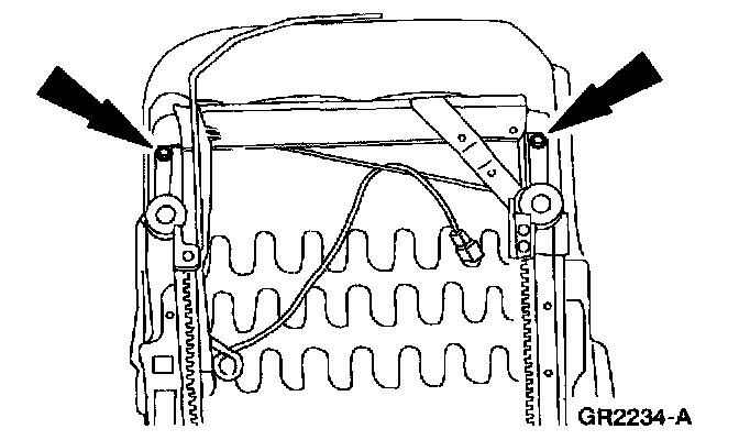 NOTE: Driver side seat shown, passenger side seat similar.