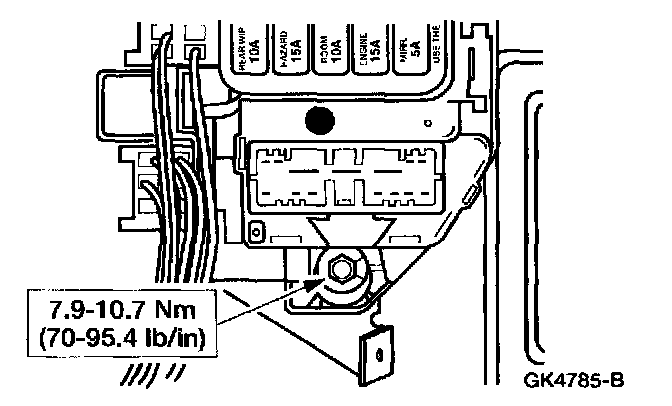 3. Remove the nut and disconnect the interior fuse junction panel from the upper mounting tab.