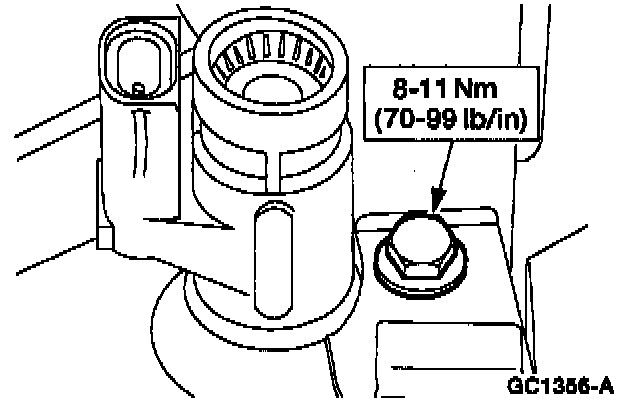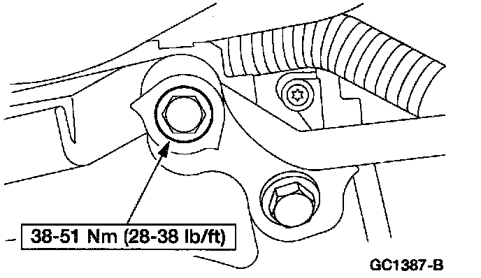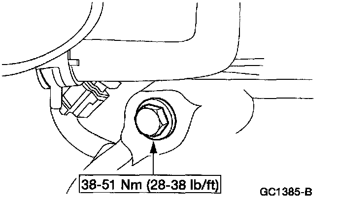 14. Install the rear upper transaxle to engine bolt.