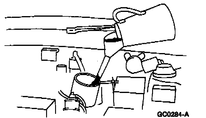 23. Place a funnel into the vehicle speed sensor (VSS) hole.