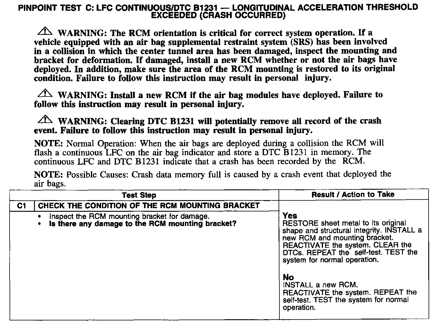 PINPOINT TEST C: LFC CONTINUOUS/DTC B1231 - LONGITUDINAL ACCELERATION THRESHOLD EXCEEDED (CRASH OCCURRED)