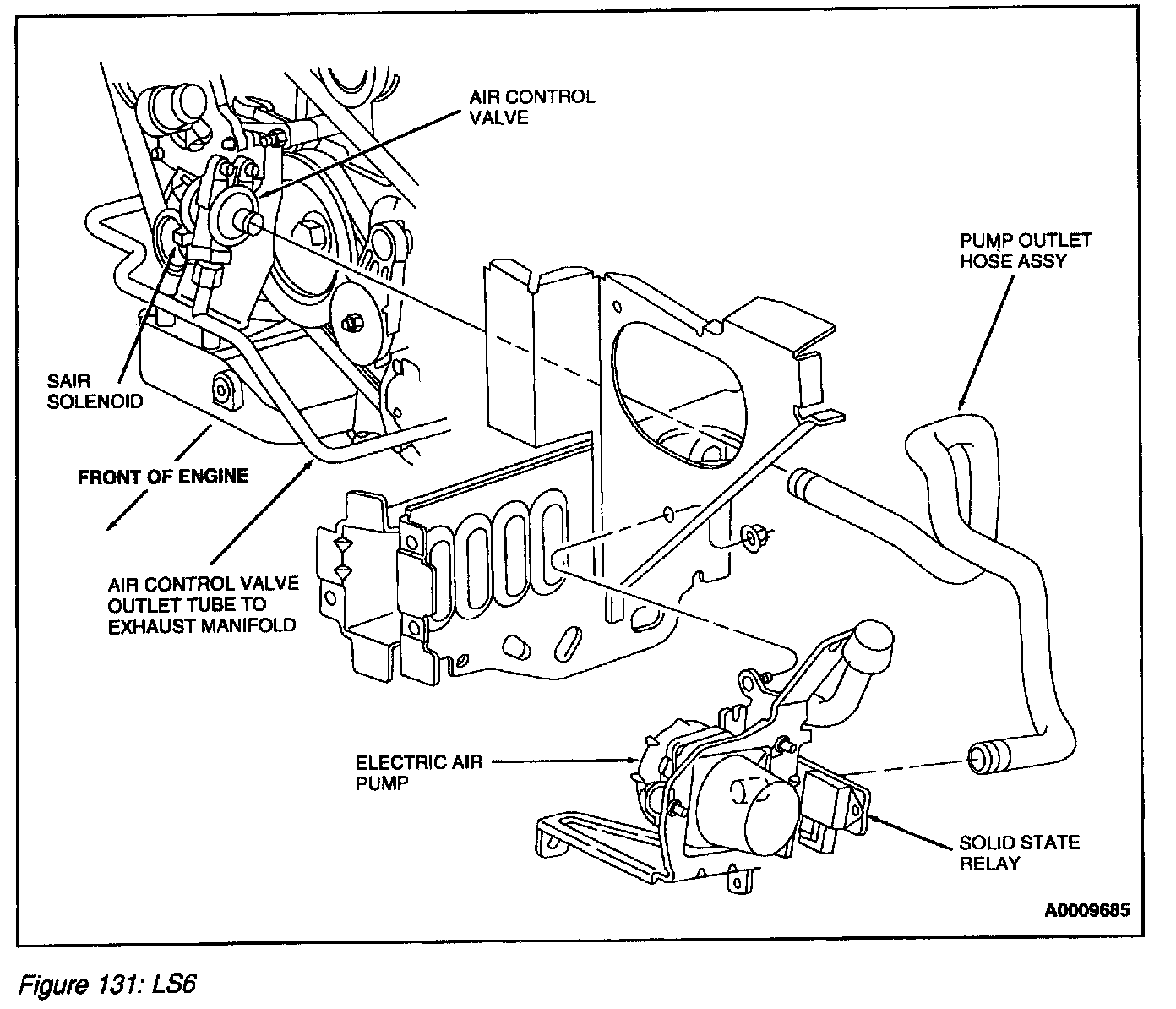 7. The electric AIR pump delivers the required amount of air to control emissions during engine operation. Air is forced into the exhaust manifolds to oxidize the hydrocarbons and carbon monoxide created by running rich at start up.