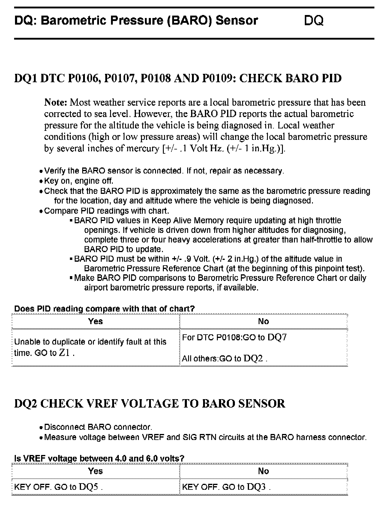 Tests DQ: Barometric Pressure (BARO) Sensor