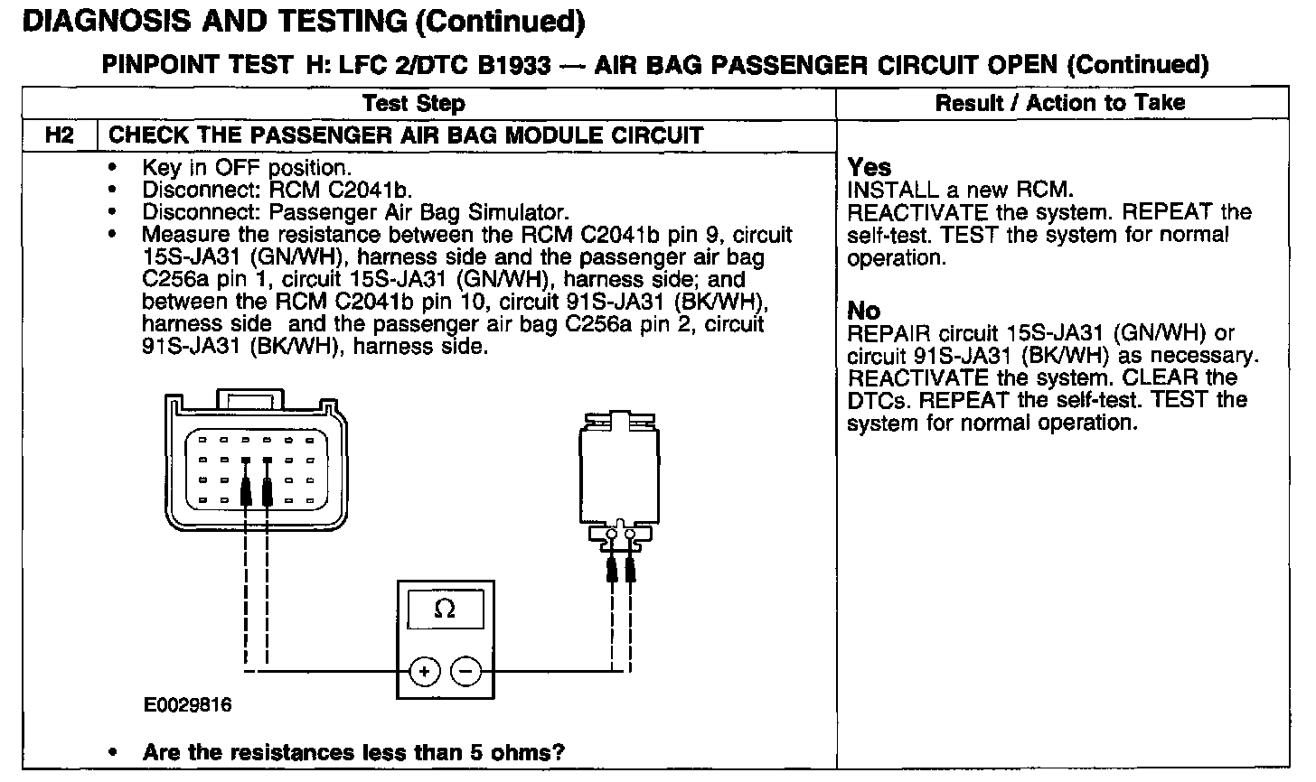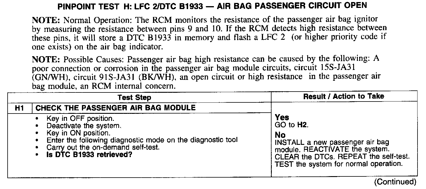 PINPOINT TEST H: LFC 2/DTC B1933 -