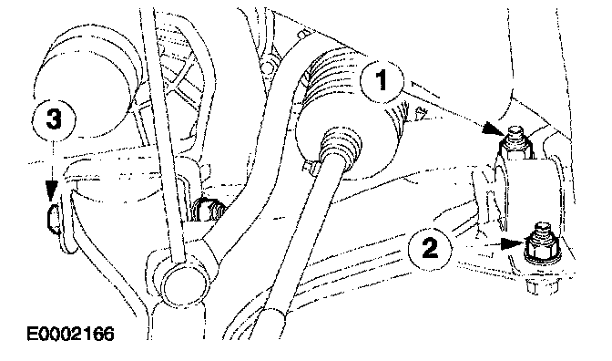 1. NOTE: Bolts 1 and 3 are torque-to-yield. New nuts, bolts and ball bearing washers must be installed. Install the lower arm bolts.