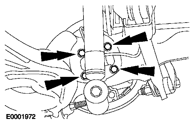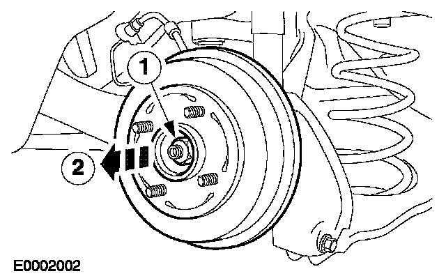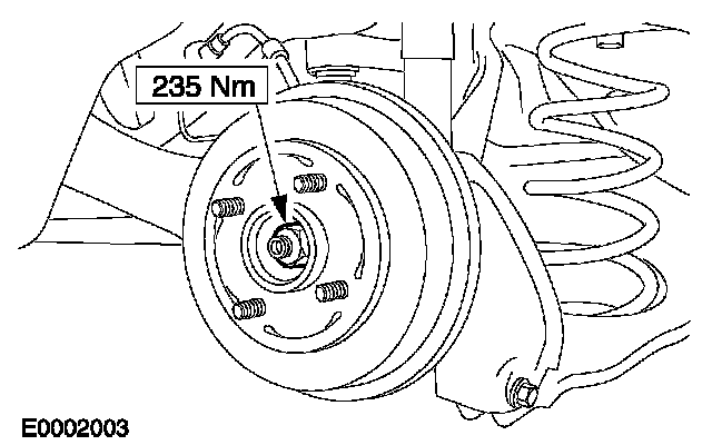 1. CAUTION: Make sure that the wheel spindle-to-brake backing plate mating surface area and the brake backing plate-to-knuckle mating area is free of any foreign material before installing the wheel spindle.