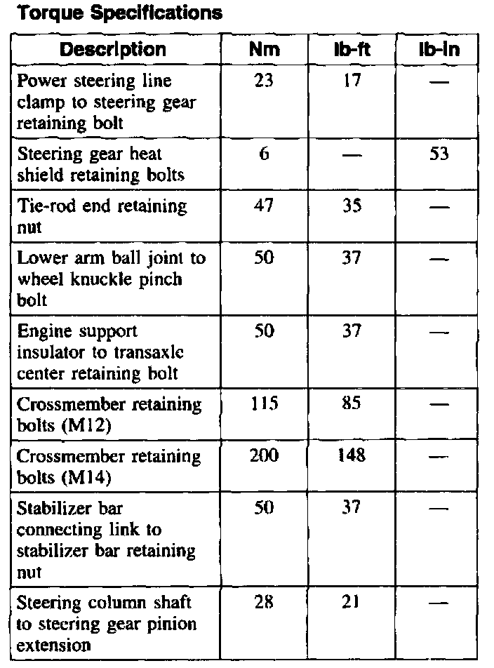 Torque Specifications: