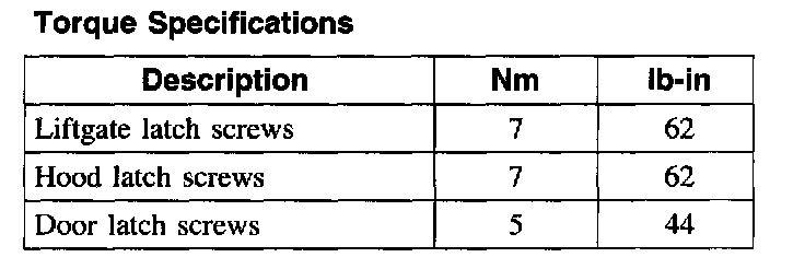 Torque Specifications: