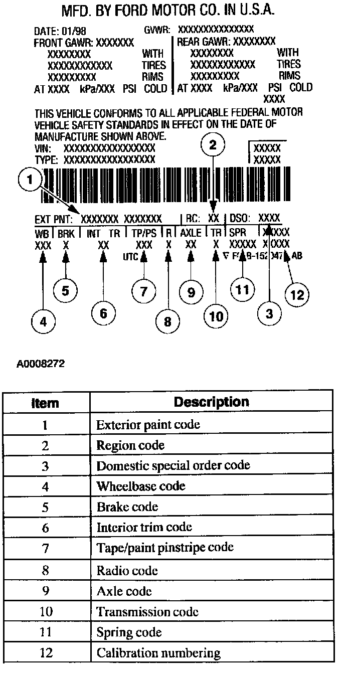 The Vehicle Certification Label (VC) is located on the left-hand front door jamb.