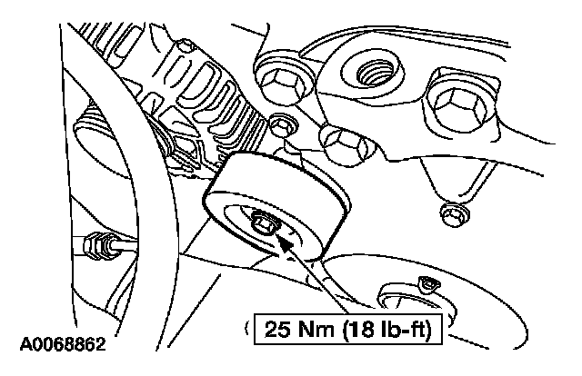 11. Install the accessory drive belt idler pulley and the bolt.