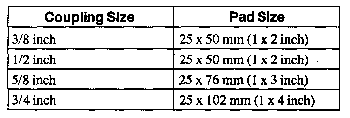 2. Cut an abrasive pad from maroon colored 3M Scotch Brite (R) with the dimensions corresponding to the coupling size.