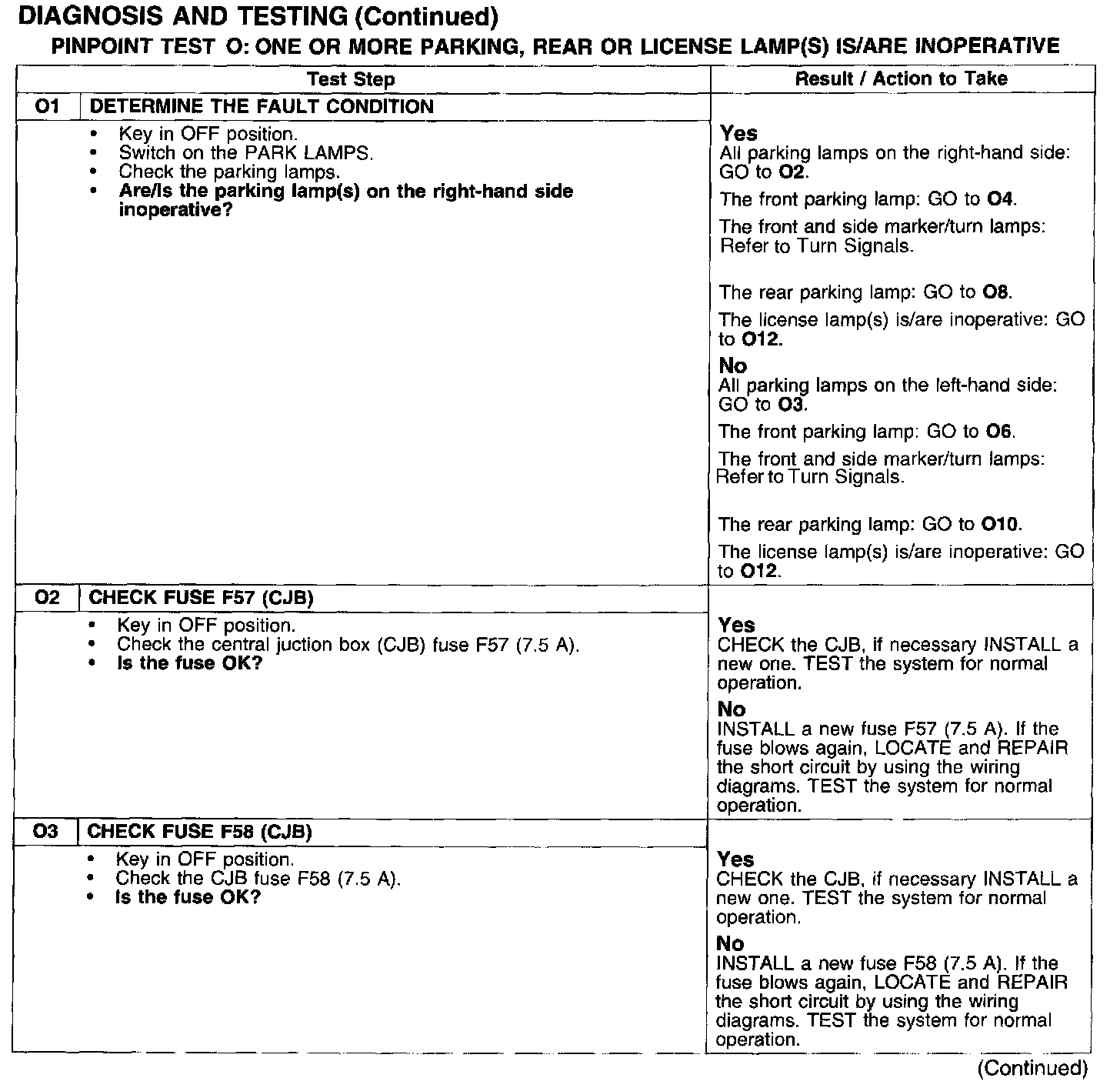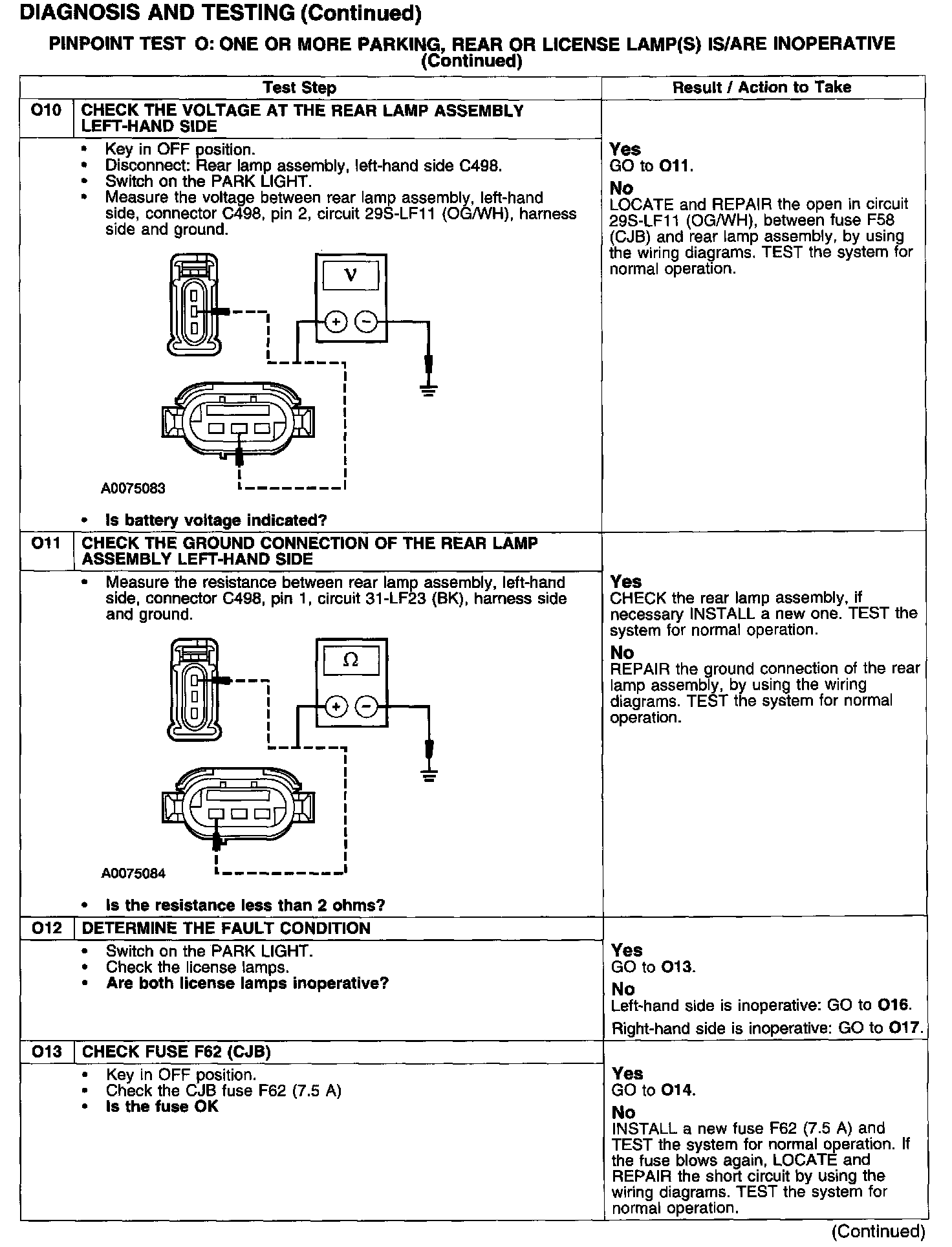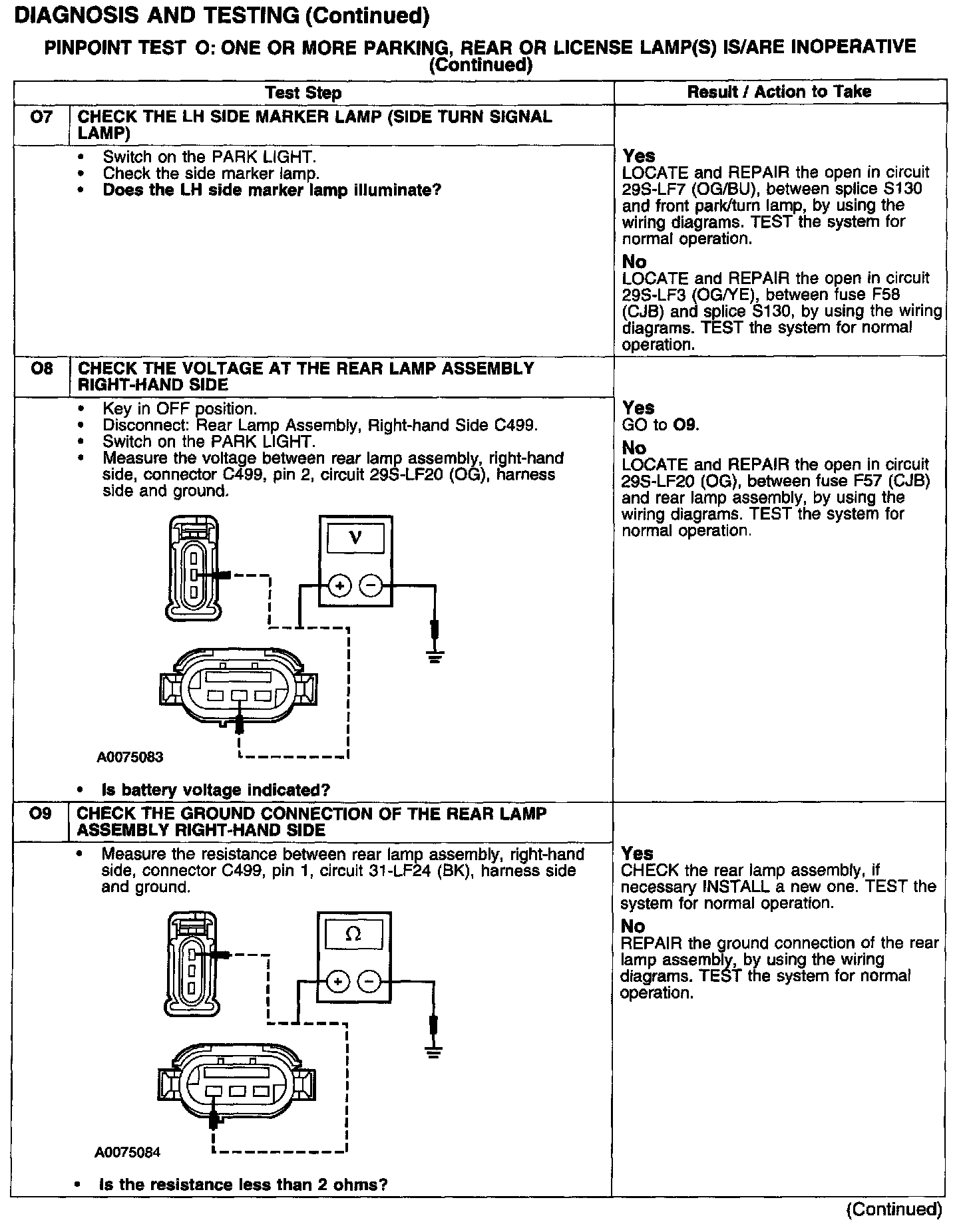 PINPOINT TEST O: ONE OR MORE PARKING, REAR OR LICENSE LAMP(S) IS/ARE INOPERATIVE