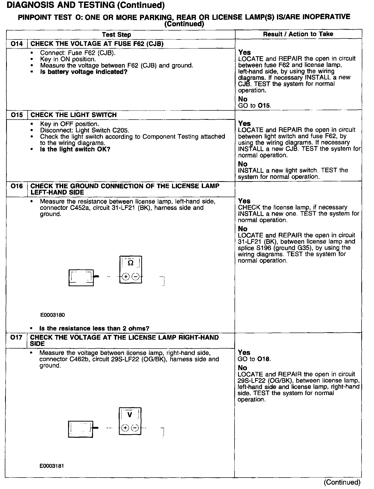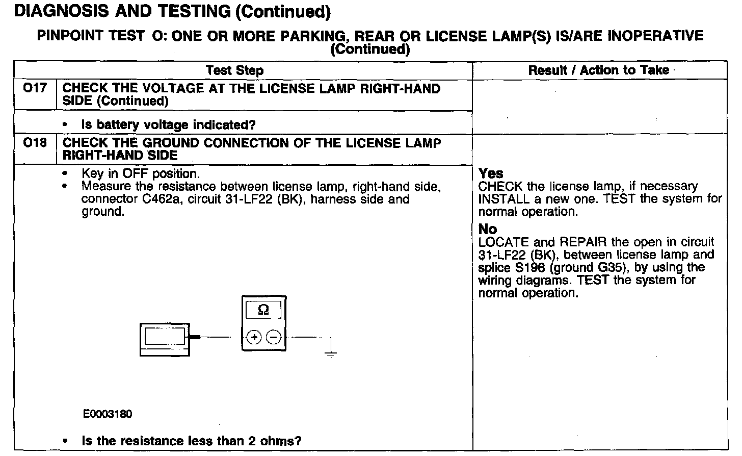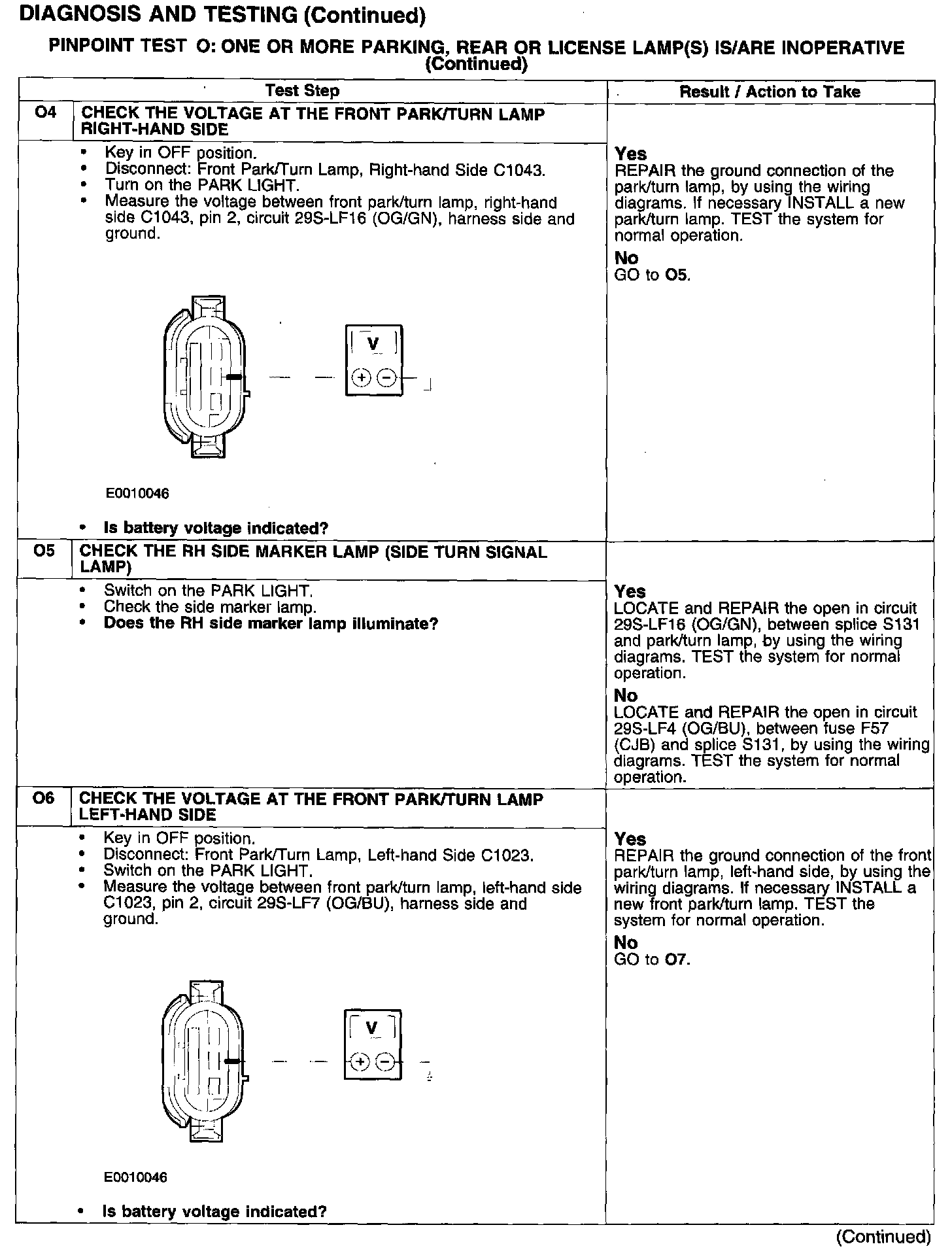 PINPOINT TEST O: ONE OR MORE PARKING, REAR OR LICENSE LAMP(S) IS/ARE INOPERATIVE