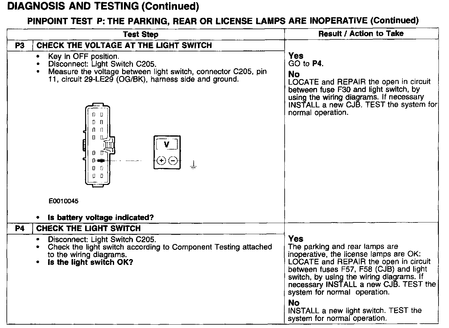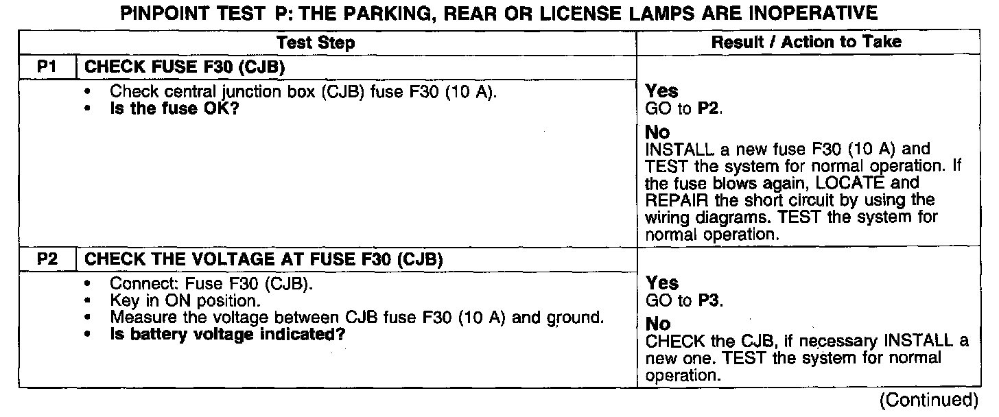 PINPOINT TEST P: THE PARKING, REAR OR LICENSE LAMPS ARE INOPERATIVE