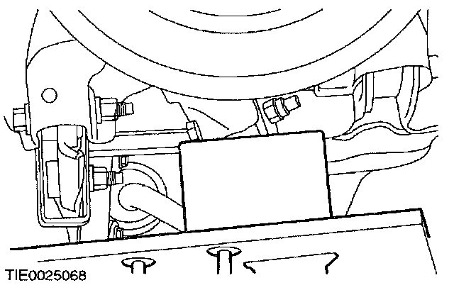 8. Using a suitable wooden block and a suitable transmission jack, raise the suspension to the design height setting.