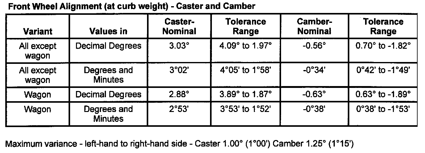 Caster and Camber - at Curb Weight Condition