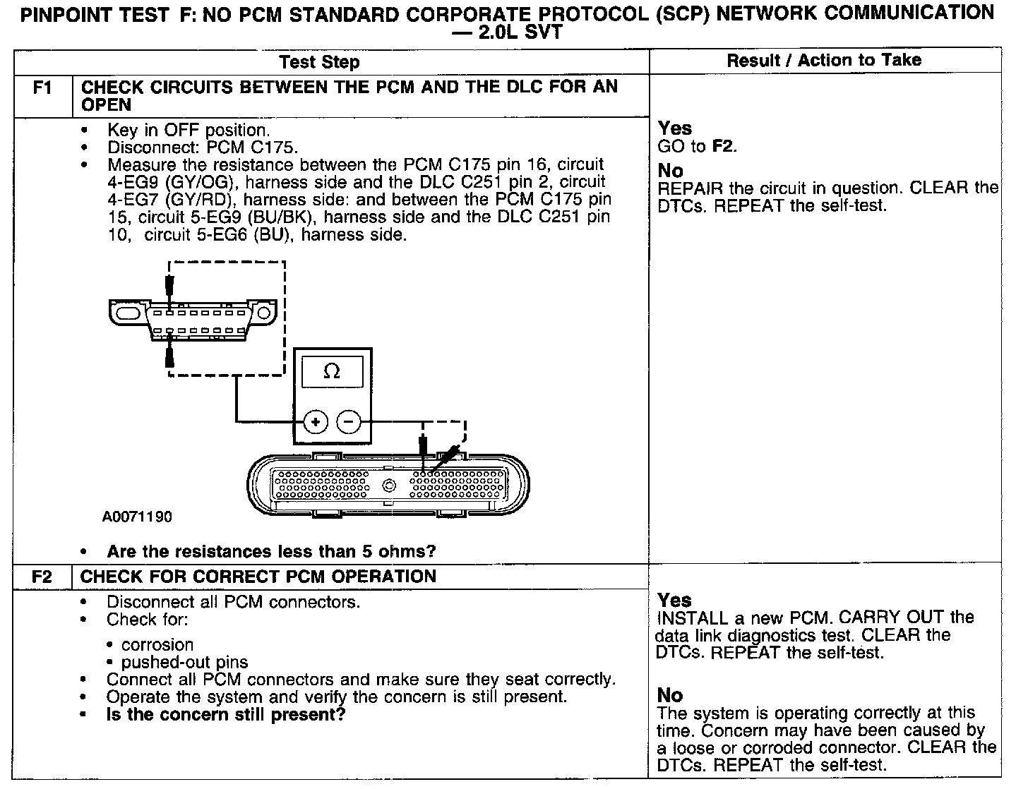 PINPOINT TEST F: NO PCM STANDARD CORPORATE PROTOCOL (SCP) NETWORK COMMUNICATION - 2.0L SVT