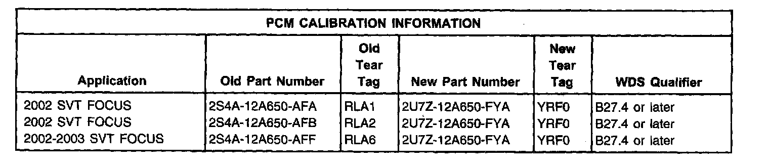 2. Using WDS reprogram the PCM. Refer to the PCM Calibration Information Chart to verify proper WDS software level, and PCM calibration level.