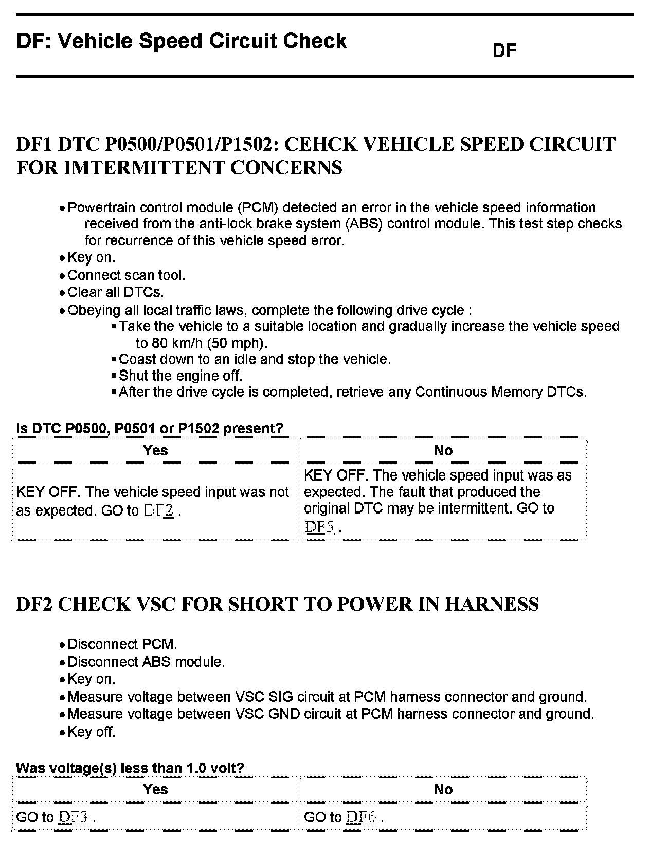 Tests DF: Vehicle Speed Circuit Check