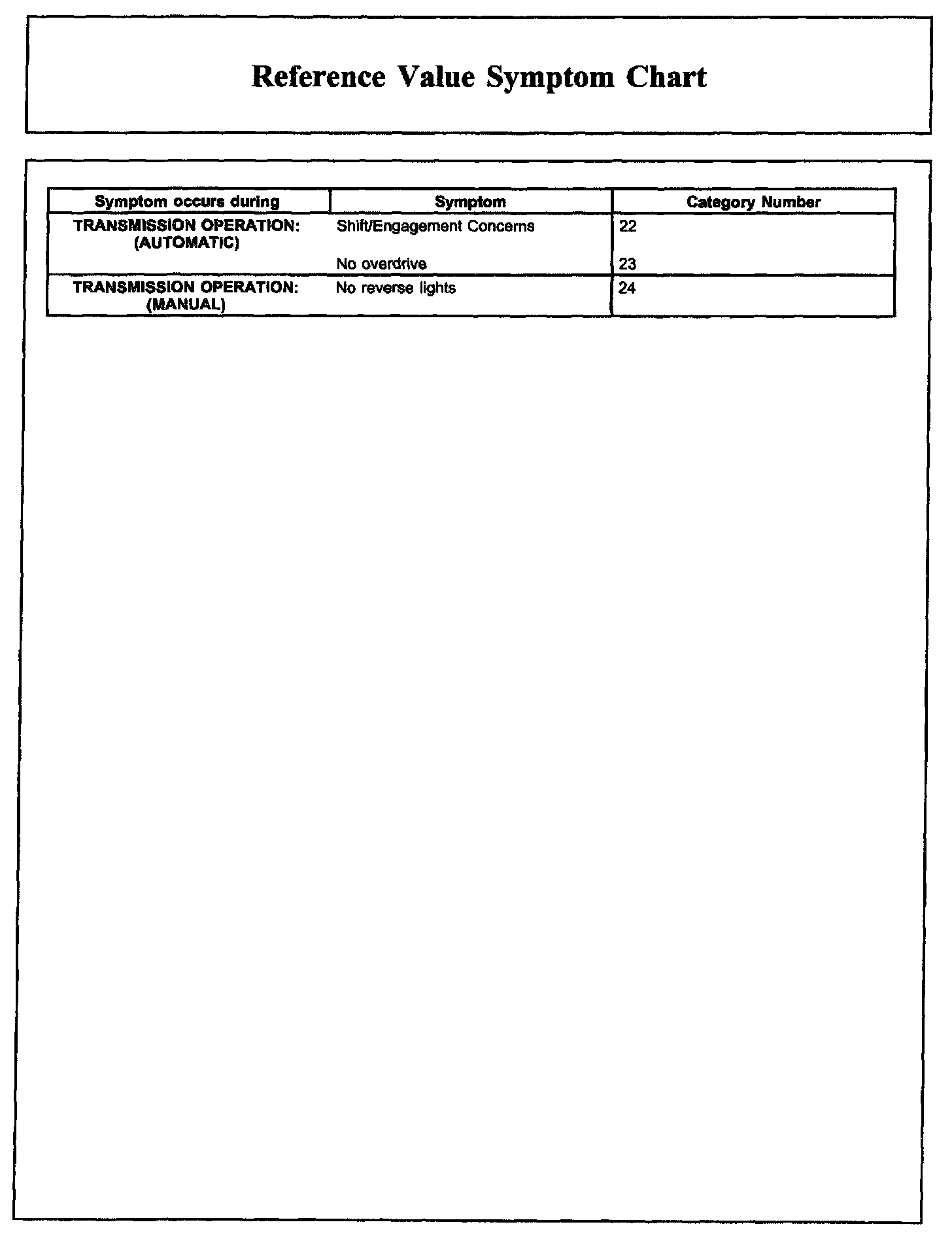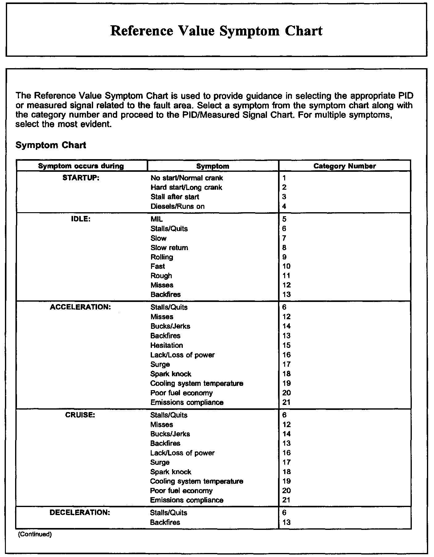 Reference Value Symptom Chart, Part 1: