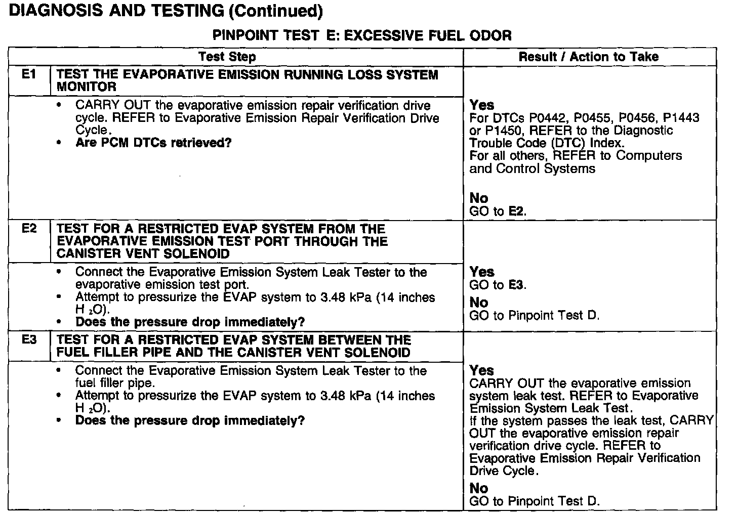 PINPOINT TEST E: EXCESSIVE FUEL ODOR