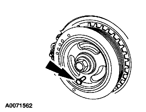 6. Turn the crankshaft pulley bolt to position the number one cylinder at top dead center, and install the special tool.