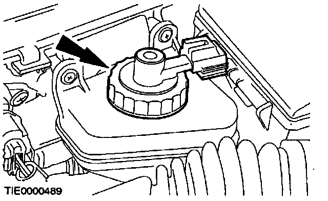 3. CAUTION: The brake fluid reservoir cap must not become contaminated.